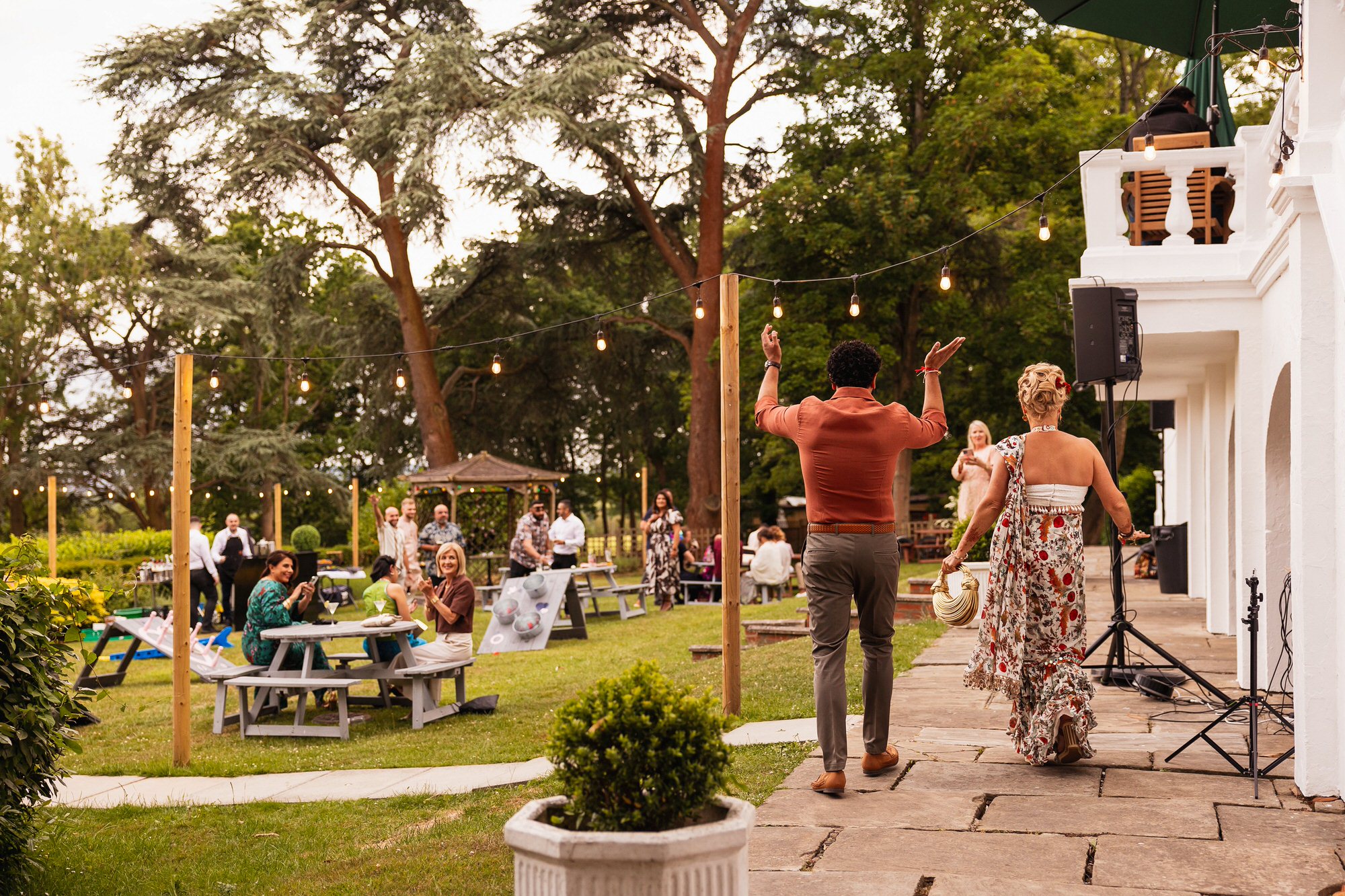 Outside in the gardens, the confetti moment was pure joy — everyone gathered to celebrate their love before heading off to get ready for the evening festivities.