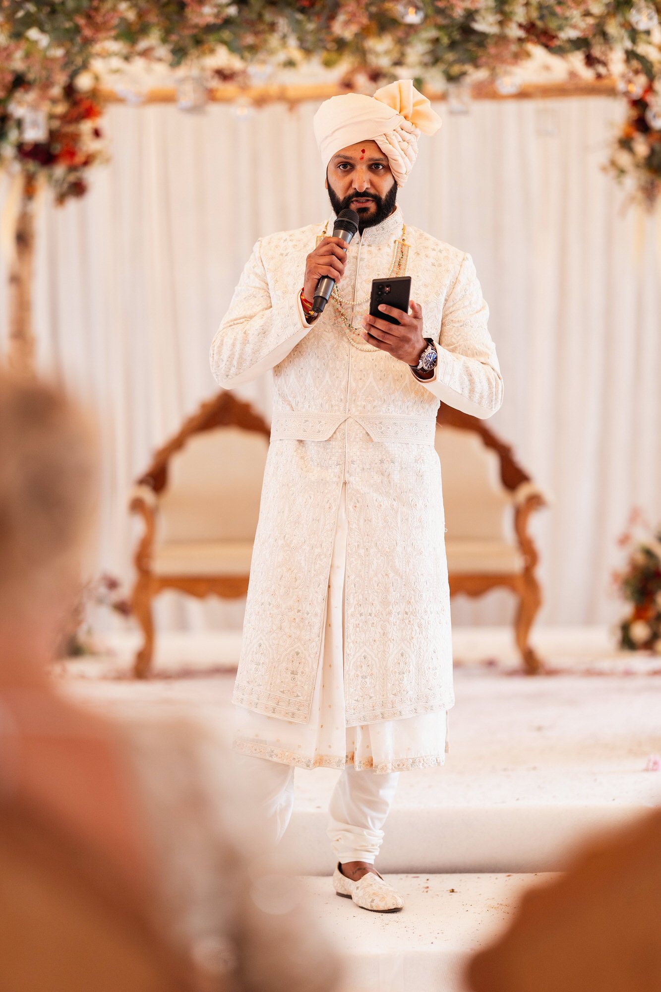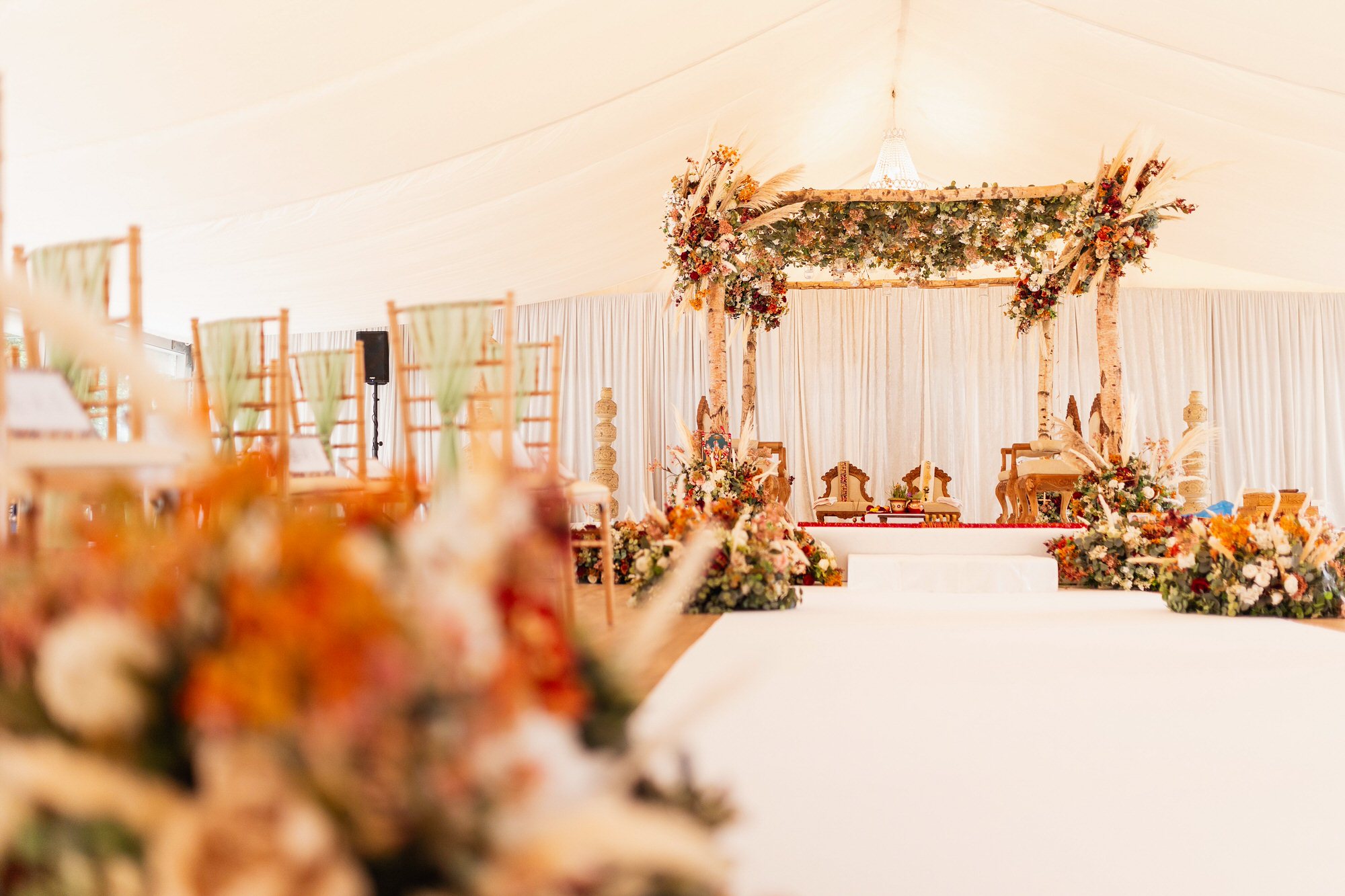 I arrived at The Manor Elstree on a calm, early summer morning. The mandap in the marquee was beautifully set up — the perfect moment to photograph it before guests began to arrive.
